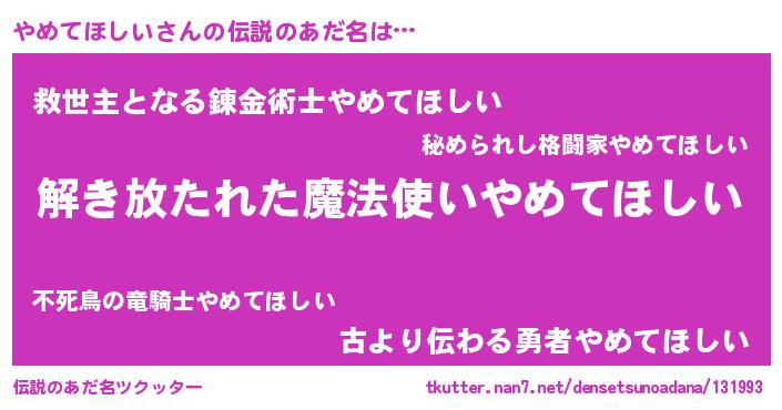 | ヒーロー風カッコイイあだ名 | 『幻影騎士ヤメ』『ネオヤメテホシイ』 |
