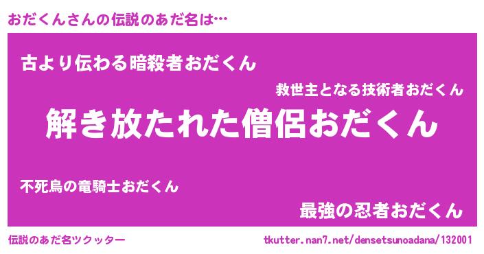 | 男性向けラノベタイトル風あだ名 | 『ダンジョンにおだくんを求めるのは間違っているだろうか』 |