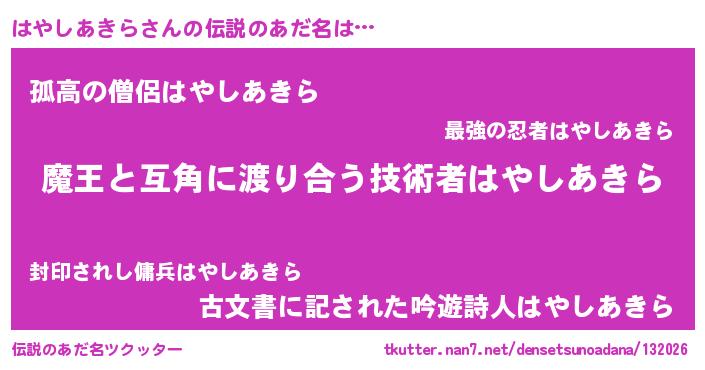 | ヒーロー風カッコイイあだ名 | 『愛の使者はやしあきら』『仮面ハヤダー』 |