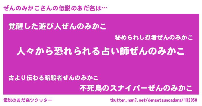 | 肩書あだ名 | 『ぜんのみかこ少将』『ぜんのみかこ総統』 |