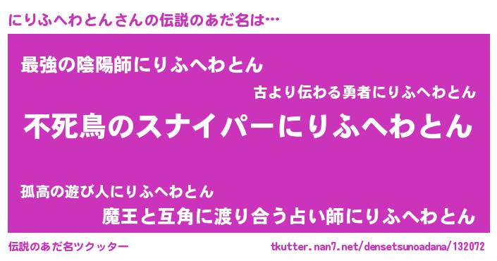 | ヒーロー風カッコイイあだ名 | 『スーパーニリフヘワトン』 |