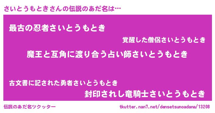 | 意味不明あだ名 | 『住所不定無職さいとうもとき(40歳)』 |