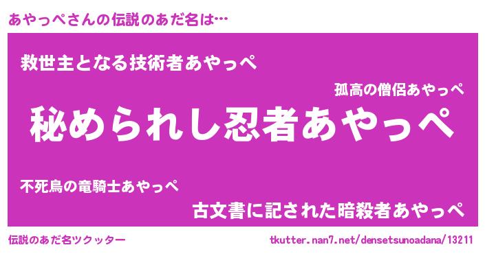 | ヒーロー風カッコイイあだ名 | 『仮面アヤダー』『ウルトラあやっぺマン』 |