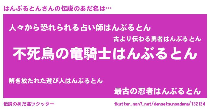 | 意味不明あだ名 | 『住所不定無職はんぶるとん(8歳)』 |