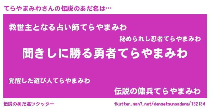 | 意味不明あだ名 | 『永久保存てらやまみわ』 |