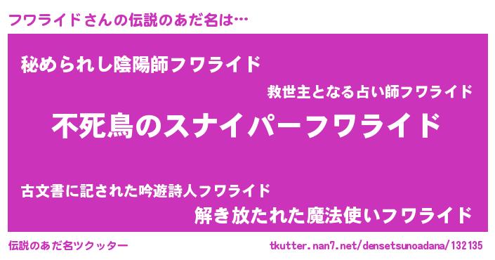 | 男性向けラノベタイトル風あだ名 | 『フワライドの憂鬱』 |