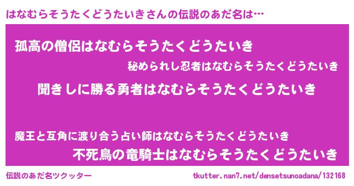 | 意味不明あだ名 | 『永久保存はなむらそうたくどうたいき』 |