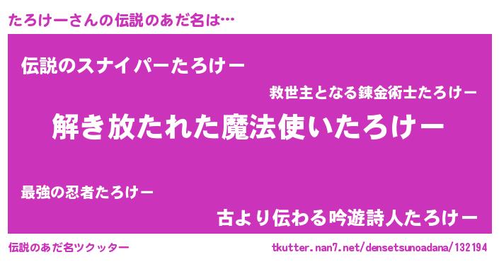 | 意味不明あだ名 | 『住所不定無職たろけー(5歳)』 |
