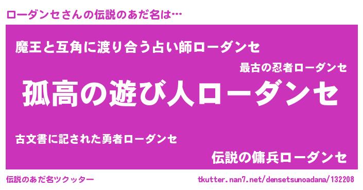 | ヒーロー風カッコイイあだ名 | 『暗黒騎士ロー』『愛の使者ローダンセ』 |