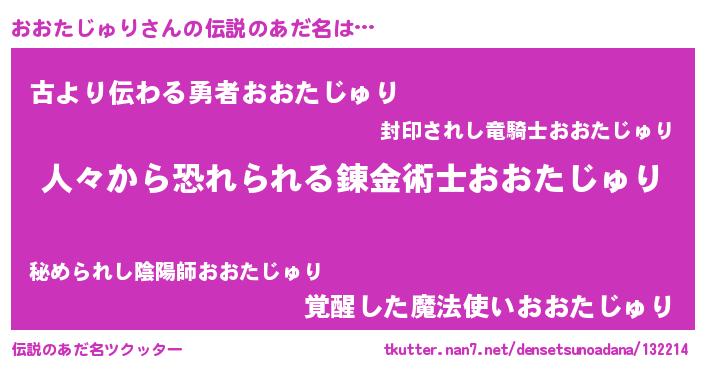| 男性向けラノベタイトル風あだ名 | 『おまえをオタクにしてやるから、俺をおおたじゅりにしてくれ! 』 |