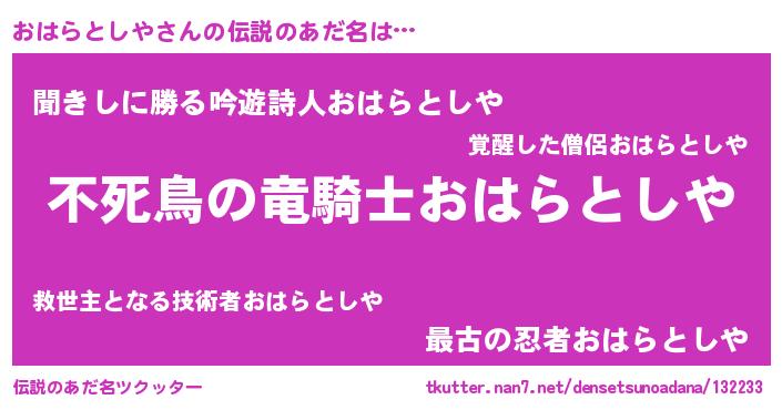 | ヒーロー風カッコイイあだ名 | 『仮面オハダー』『スーパーオハラトシヤ』 |