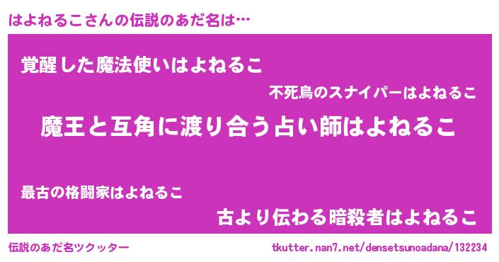 | ヒーロー風カッコイイあだ名 | 『愛の使者はよねるこ』『天弓騎士ハヨ』 |