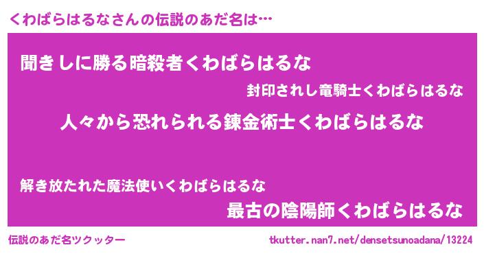 | 恥ずかしいあだ名 | 『クワバラハルナデラックス』『くわちん』 |