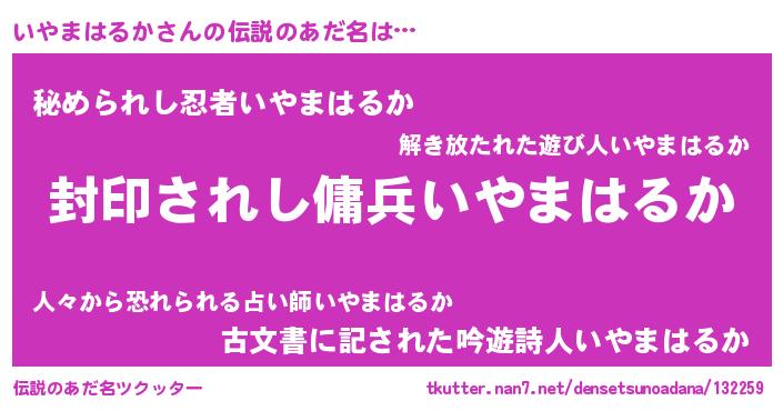| 意味不明あだ名 | 『自称いやまはるか』 |