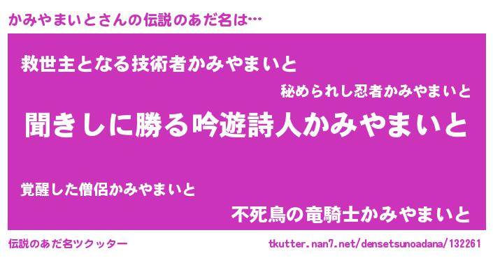 | ヒーロー風カッコイイあだ名 | 『ネオカミヤマイト』『仮面カミダー』 |