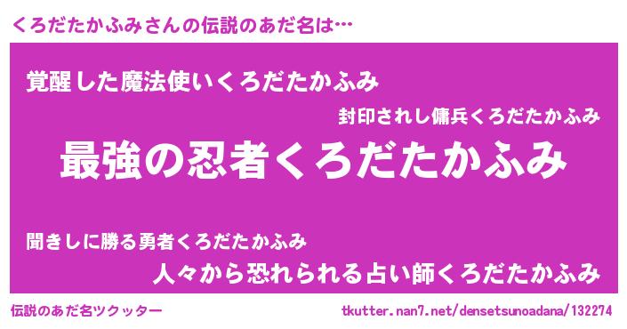 | ファンタジー風あだ名 | 『エターナルクロダタカフミー』 |