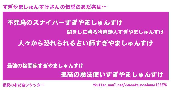 | 男性向けラノベタイトル風あだ名 | 『緋弾のスギヤマシュンスケ』 |