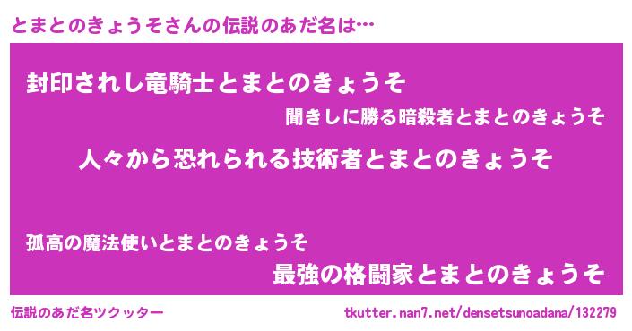 | 意味不明あだ名 | 『自称とまとのきょうそ』 |