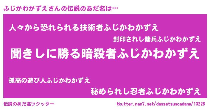 | 意味不明あだ名 | 『自称ふじかわかずえ』 |