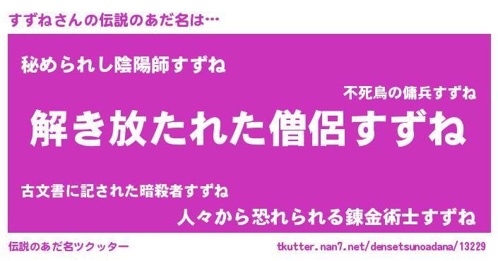 | 意味不明あだ名 | 『自称すずね』『とにかく怪しいすずね』 |