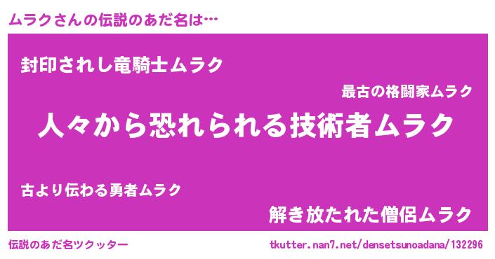 | 意味不明あだ名 | 『住所不定無職ムラク(10歳)』『自称ムラク』 |