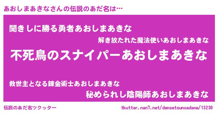 | 意味不明あだ名 | 『住所不定無職あおしまあきな(95歳)』 |