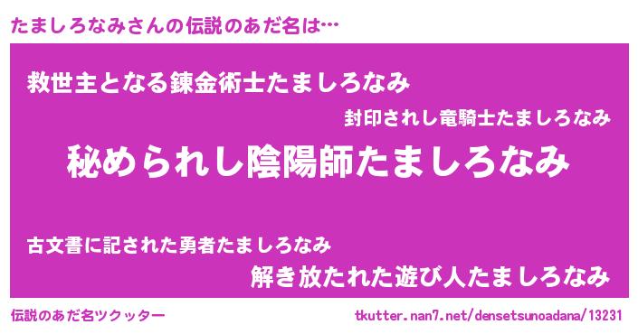 | 意味不明あだ名 | 『たましろなみフォーエバー』 |