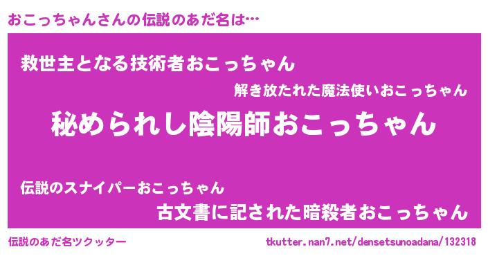 | 男性向けラノベタイトル風あだ名 | 『やはりおこっちゃんの青春ラブコメはまちがっている 』 |
