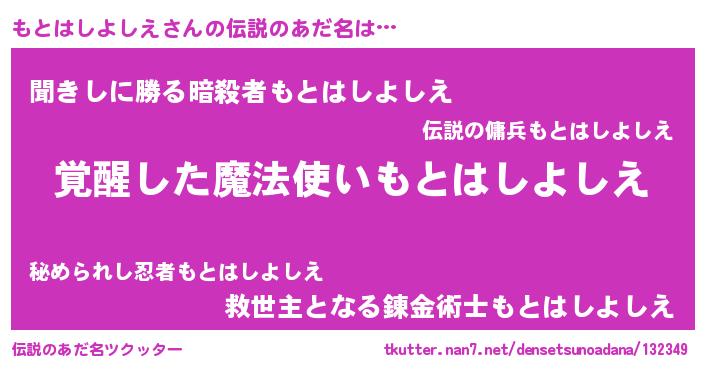 | 意味不明あだ名 | 『とにかく怪しいもとはしよしえ』 |