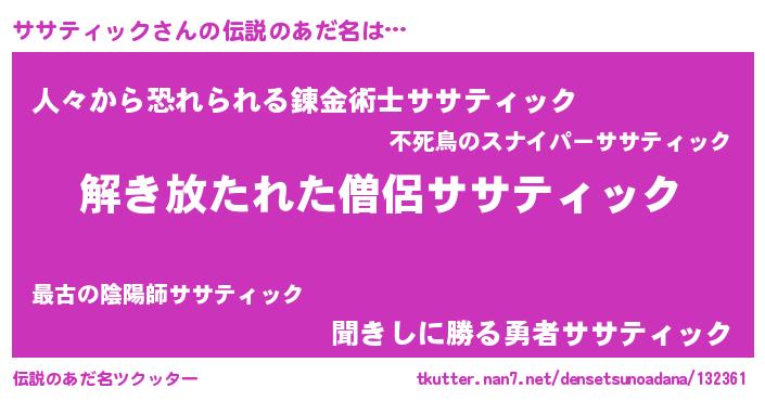 | ヒーロー風カッコイイあだ名 | 『銀牙騎士ササ』『ネオササティック』 |