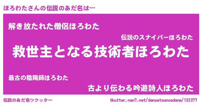 | ヒーロー風カッコイイあだ名 | 『慈愛の使者ほろわた』『魔戒騎士ホロ』 |