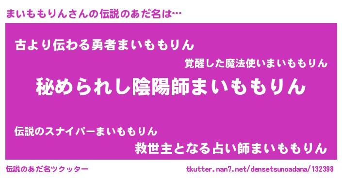 | 意味不明あだ名 | 『めかぶ科まいももりん属』 |