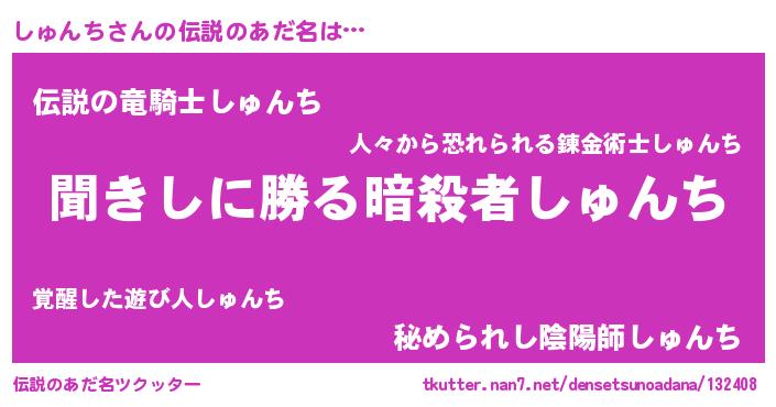 | ヘコむあだ名 | 『しゅんち(爆)』『しゅにー』『牛乳』 |