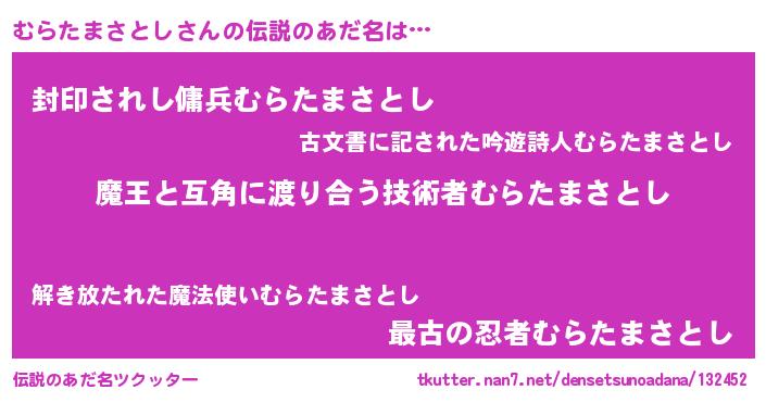 | 意味不明あだ名 | 『住所不定無職むらたまさとし(8歳)』 |