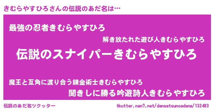 | 肩書あだ名 | 『きむらやすひろ御曹司』 |
