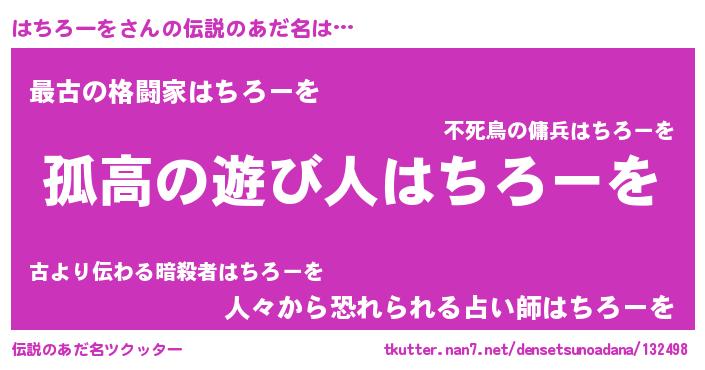 | 意味不明あだ名 | 『とにかく怪しいはちろーを』 |
