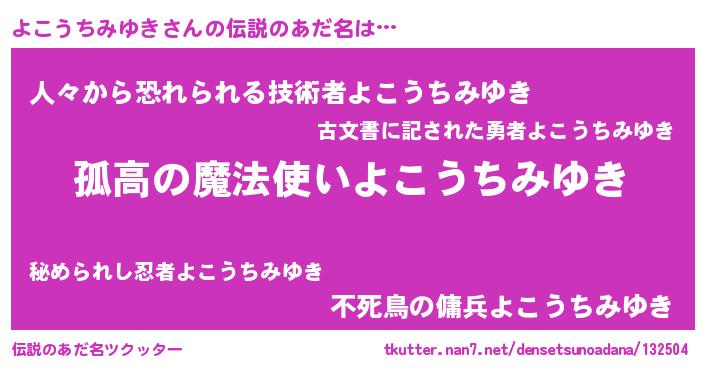 | ヒーロー風カッコイイあだ名 | 『暗黒騎士ヨコ』『ネオヨコウチミユキ』 |
