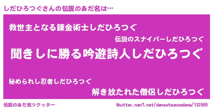 | ヘコむあだ名 | 『しだひろつぐ(小並感)』『しだっちょ』 |