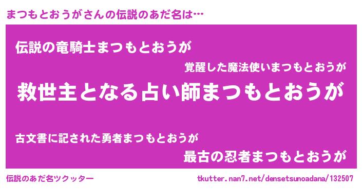 | ヒーロー風カッコイイあだ名 | 『慈愛の使者まつもとおうが』 |