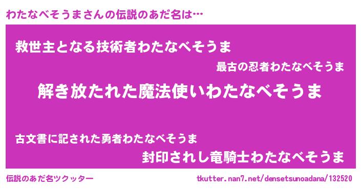 | 女子向けラノベタイトル風あだ名 | 『わたなべそうまの卵を拾いまして』 |