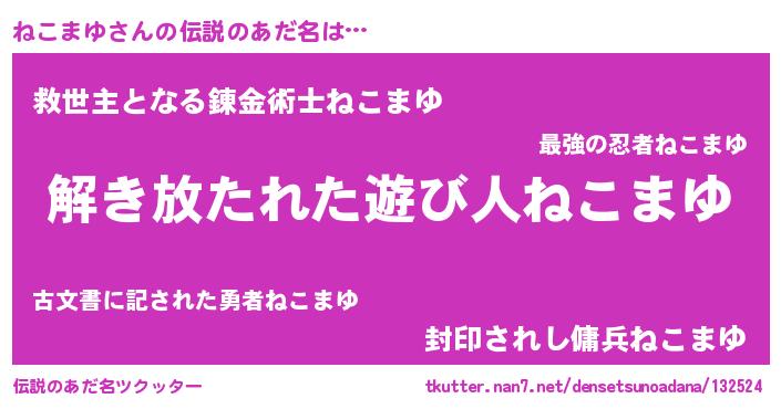 | 意味不明あだ名 | 『とにかく怪しいねこまゆ』 |