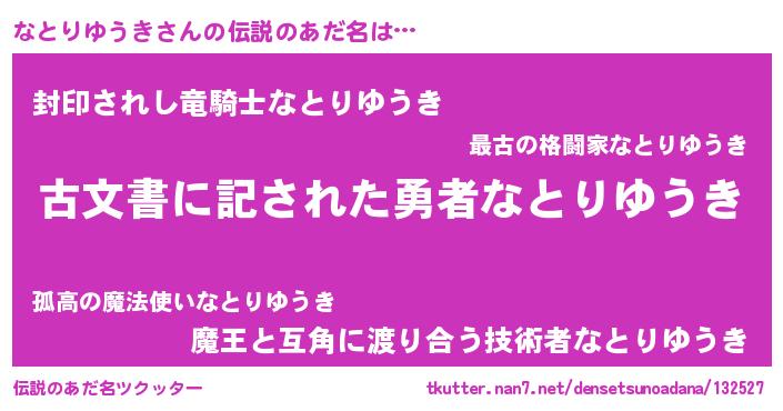 | ヒーロー風カッコイイあだ名 | 『ネオナトリユウキ』 |