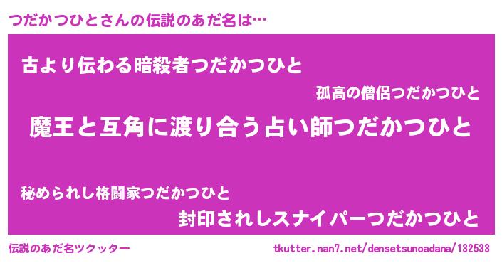 | 男性向けラノベタイトル風あだ名 | 『転生したらつだかつひとだった件』 |