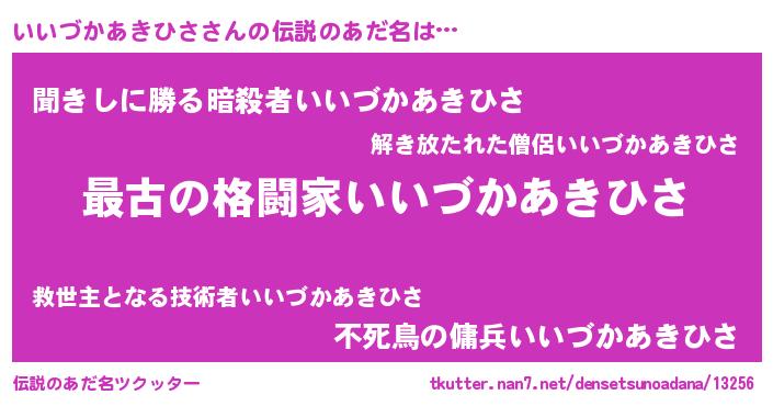 | ヒーロー風カッコイイあだ名 | 『仮面イイダー』『ネオイイヅカアキヒサ』 |