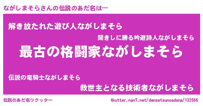 | 意味不明あだ名 | 『住所不定無職ながしまそら(11歳)』 |