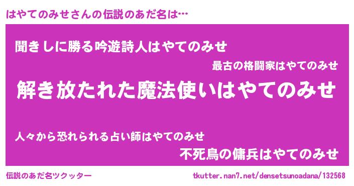 | ヒーロー風カッコイイあだ名 | 『幻影騎士ハヤ』『ネオハヤテノミセ』 |