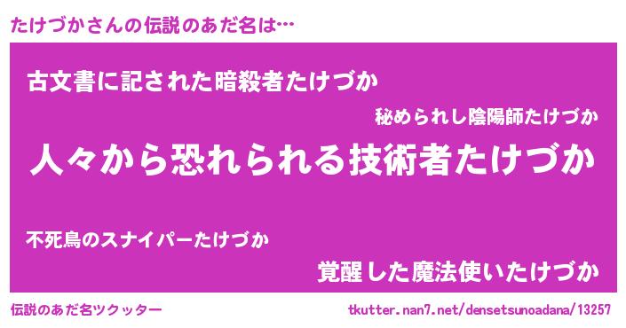 | ヒーロー風カッコイイあだ名 | 『正義の使者たけづか』『ネオタケヅカ』 |