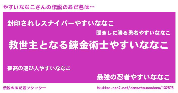 | 胡散臭い通販商品みたいなあだ名 | 『モンドセレクションを受賞した隕石のかけら…その名も「やすいななこ」』 |