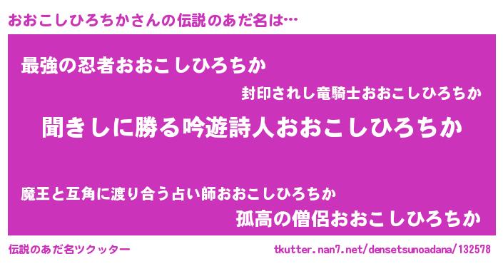 | ヒーロー風カッコイイあだ名 | 『ネオオオコシヒロチカ』『黄金騎士オオ』 |