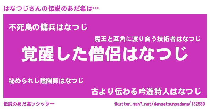 | ポケモン風あだ名 | 『ハナキング』『ヒハナツジ』 |